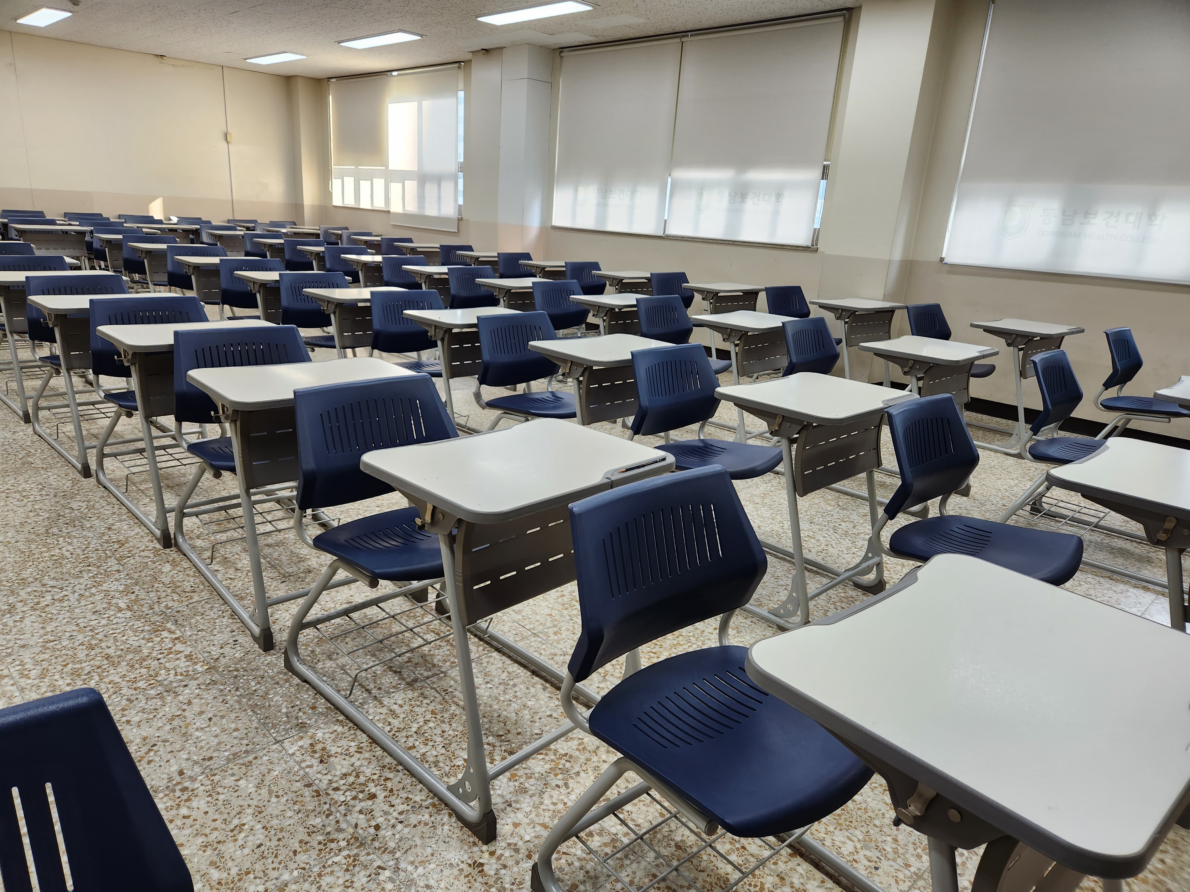 2. 제가 이번에 응시한 해운관 4층의 고사실은 책상과 의자 사이의 거리를 조절할 수 없어 불호 포인트가 되는 책걸상 일체형 좌석이 있었습니다.